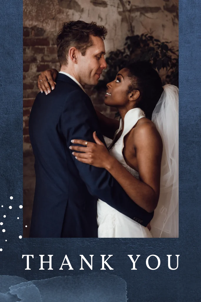 Deze hippe bedankkaart is helemaal in de stijl van jullie trouwkaart. Met de mooiste foto bedank je jullie bruiloftsgasten op een persoonlijke manier.