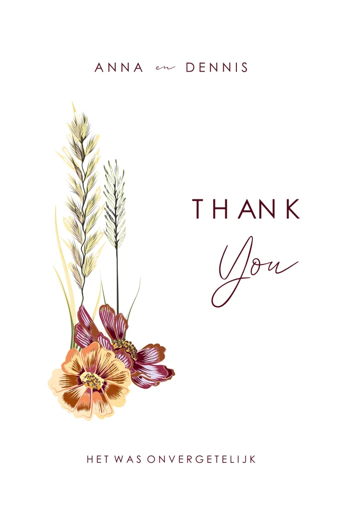 Stijlvolle kaart om de gasten van jullie huwelijk te bedanken!