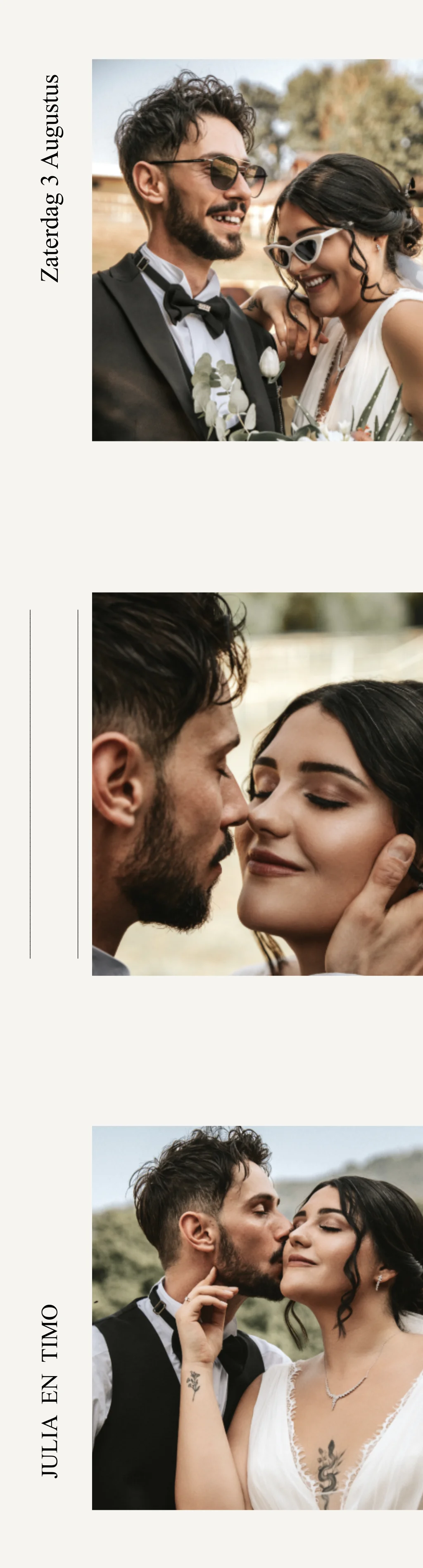 Fotostrip bedankkaart met 3 foto's die je zelf kan vervangen in de online editor.