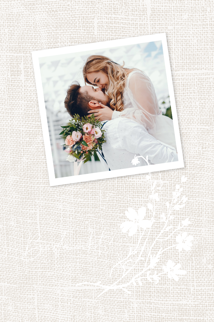Stijlvolle bedankkaart horend bij de trouwkaart met een veldboeket gedrukt in goudfolie. Deze chique bedankkaart heeft ronde hoeken. Je kunt zelf de kleuren en de foto aanpassen in de editor.