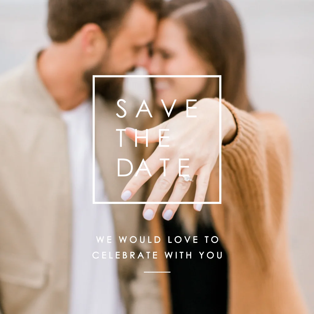 Mooie save the date kaart met ruimte voor een grote foto van het aanstaande bruidspaar. De tekst en het kader zijn in luxe goudfolie, net als de namen op de achterkant. Maak een persoonlijke kaart, upload een mooie foto en maak de kaart naar wens in de online editor!
