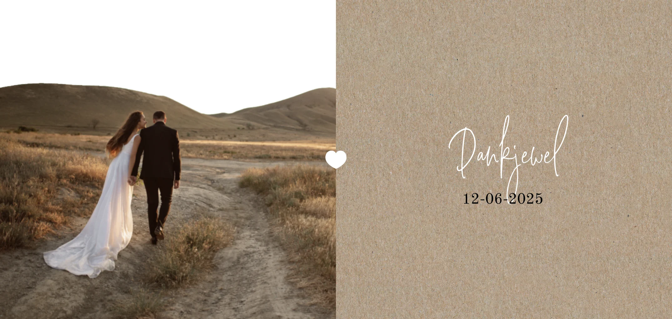 Mooie bedankkaart vin kraft-look, op de linkerhelft kun je een mooie eigen foto uploaden. In het midden een wit hartje, de tekst is afwisselend in zwart en wit in verschillende trendy lettertypes.