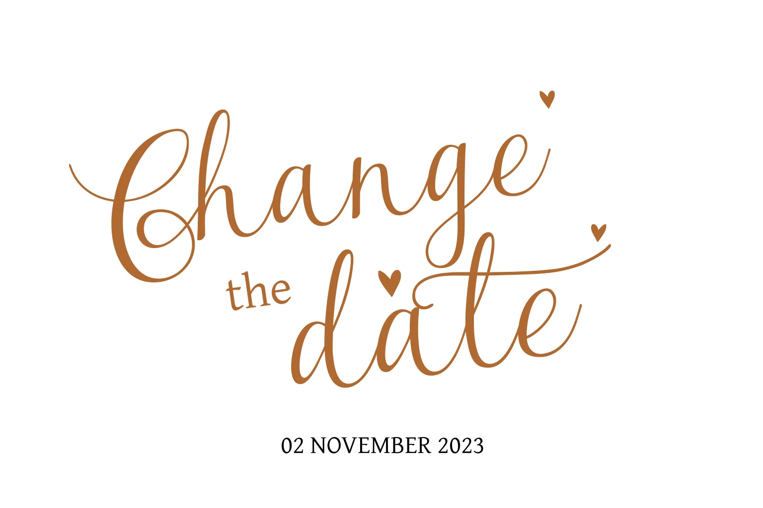 Wil je jullie gasten laten weten dat de bruiloft helaas nog even uitgesteld wordt? Dan is dit change-the-date kaartje misschien wat voor jullie. Met sierlijke letters en hartjes in warme aardetinten.