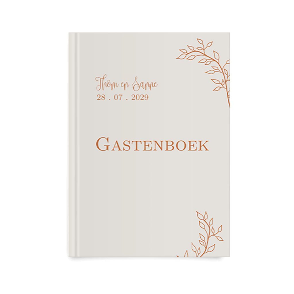 Ontwerp een gastenboek die past bij jullie trouwhuisstijl met het takje. Mooi om alles in dezelfde stijl te bestellen.