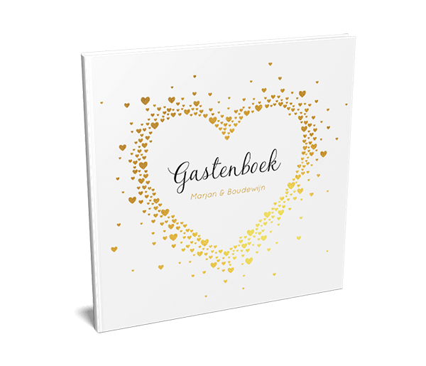 Romantische gastenboek met gouden hartjes