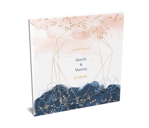 Een gastenboek behorende bij de trouwkaart met waterverf achtergrond en lijntekening van bloemen. Laat de gasten van jullie trouwfeest een mooi berichtje schrijven in dit prachtige boek.