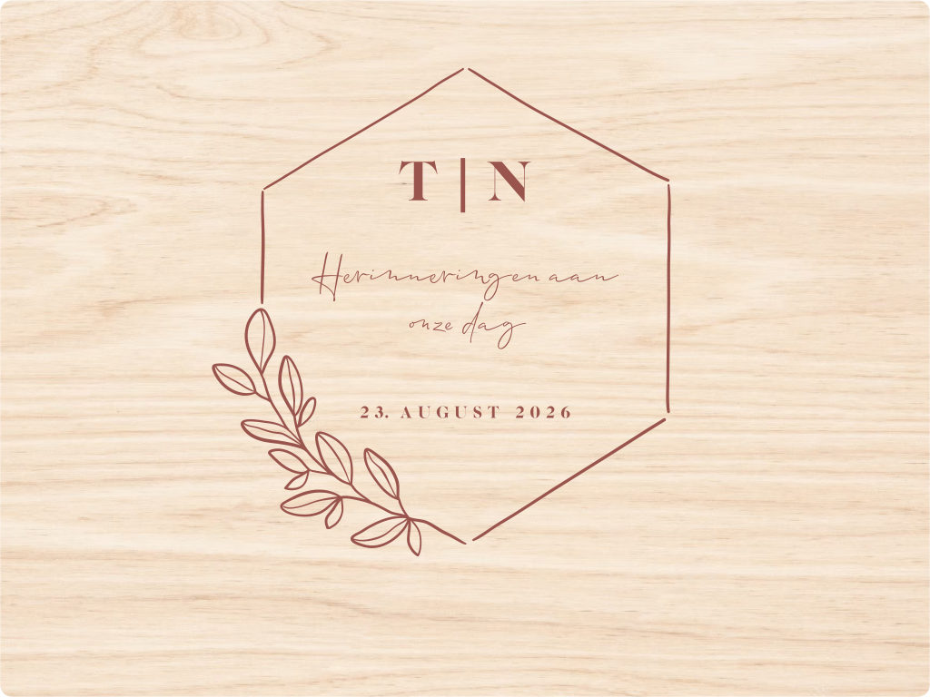 Goed om te weten: Hout is een natuurlijk product, dus elke bewaarkist is uniek. Dit komt mede door de nerven die zich in het hout bevinden. De bewaarkist wordt op een andere manier geproduceerd dan jullie trouwkaarten: de kleuren kunnen dus iets wat verschillen.