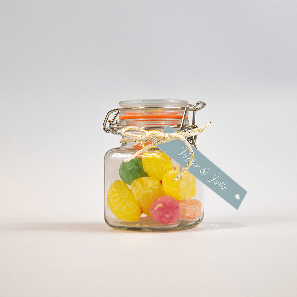 Labeltje met bruidsnamen op blauw grijs - 16 stuks