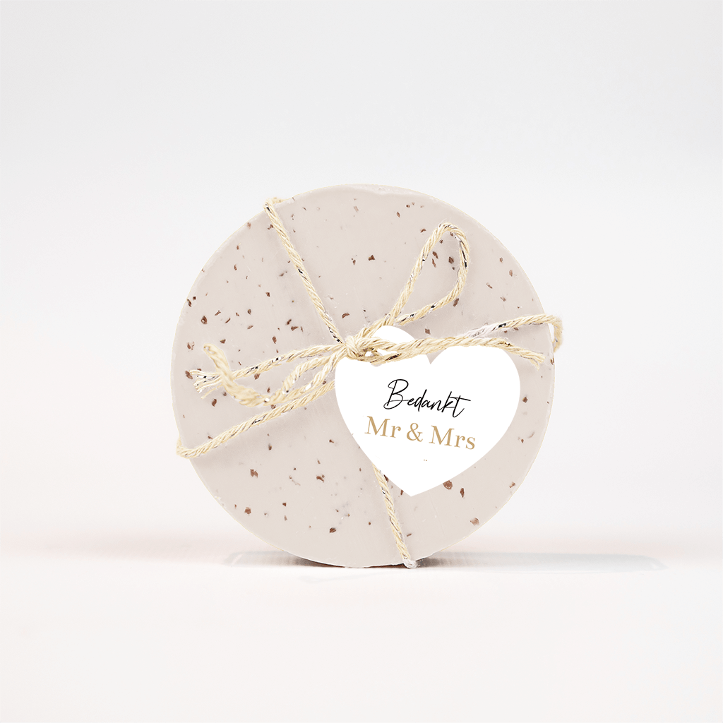 Labeltje hartje met Mr & Mrs - 16 stuks.