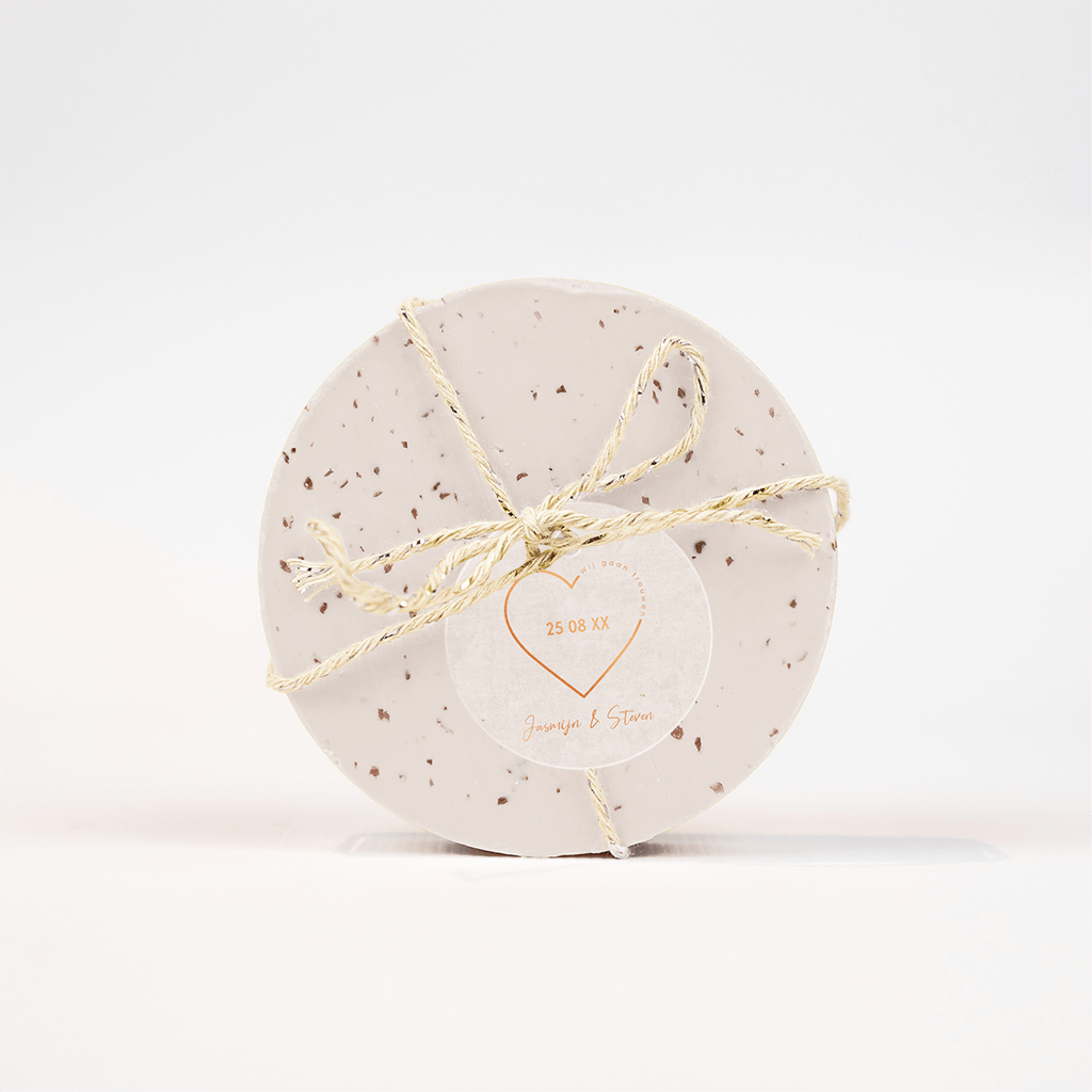 Rond labeltje met hart en tekst