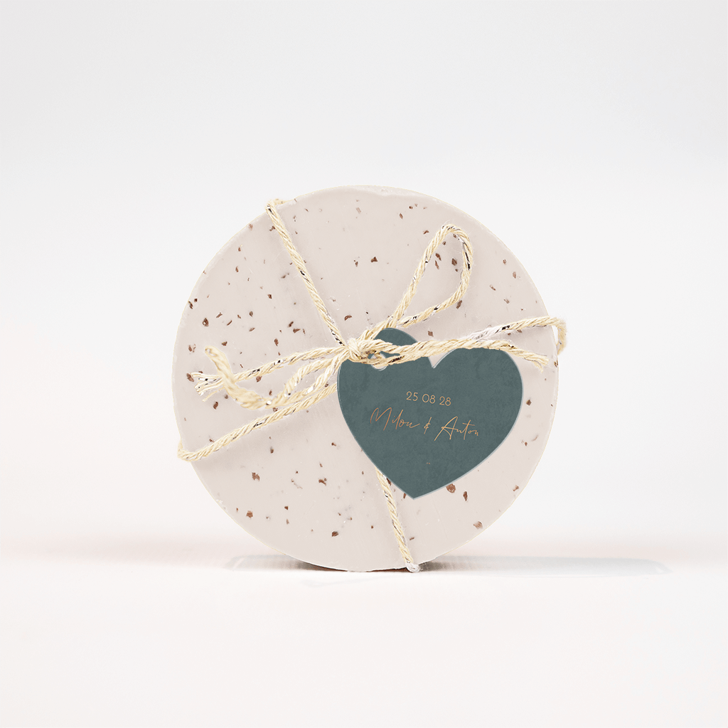 Labeltje in de vorm van een hartje en velvet blauwe achtergrond.