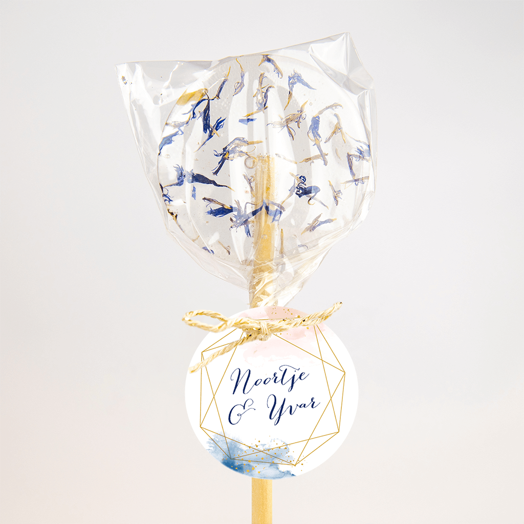 Labeltje rond met roze en blauwe watercolor - 16 stuks