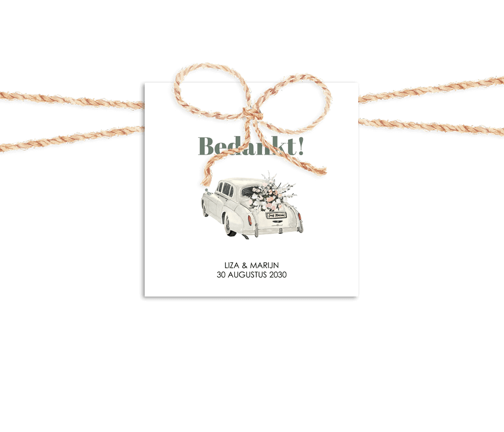 Labeltje vierkant tekening auto bruiloft