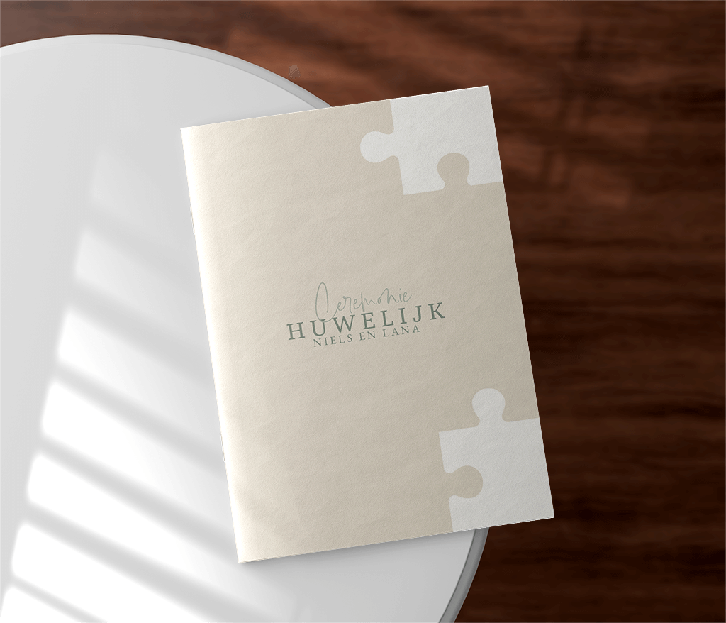 Leuk ceremonie boekje met puzzelstukjes voor een huwelijk