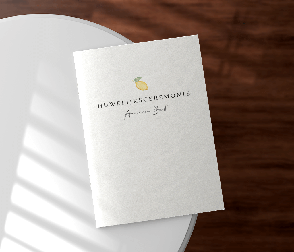 Trendy ceremonieboekje met citroen op 8 pagina's.
