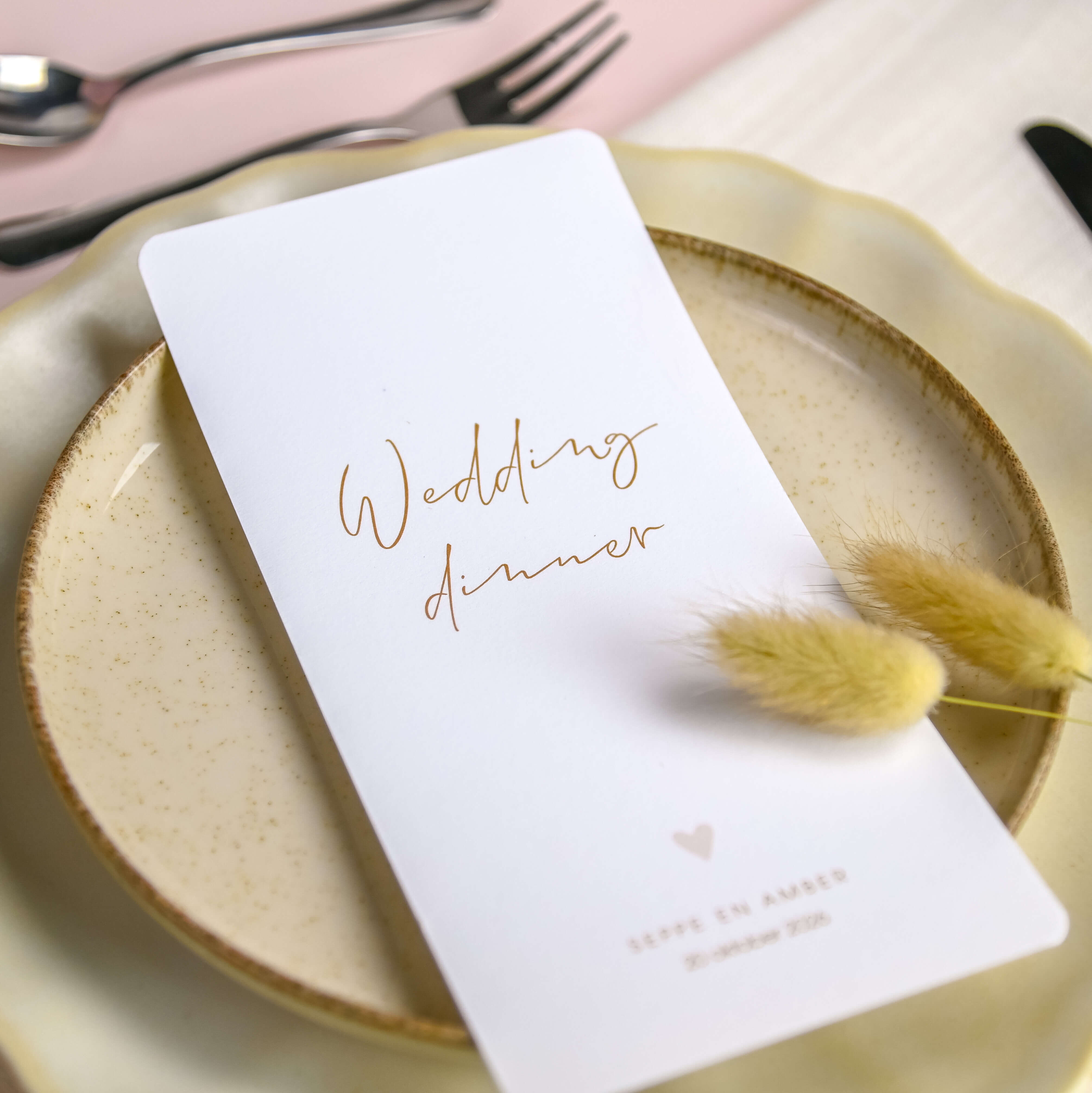 Minimalistische menukaart met leuke lettertypes en oudroze hartje