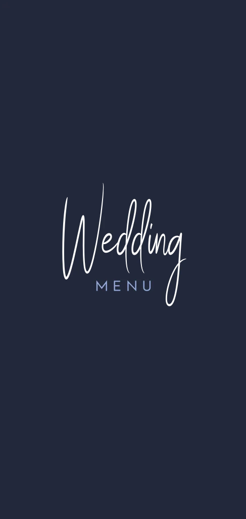 Hippe menukaart in donkerblauw gecombineerd met lavendelblauw. De tekst op de voorkant is in goudfolie met het paars blauw, voor het menu op de achterkant zijn blauwe letters gebruikt. Pas de kaart naar wens aan in de online editor.