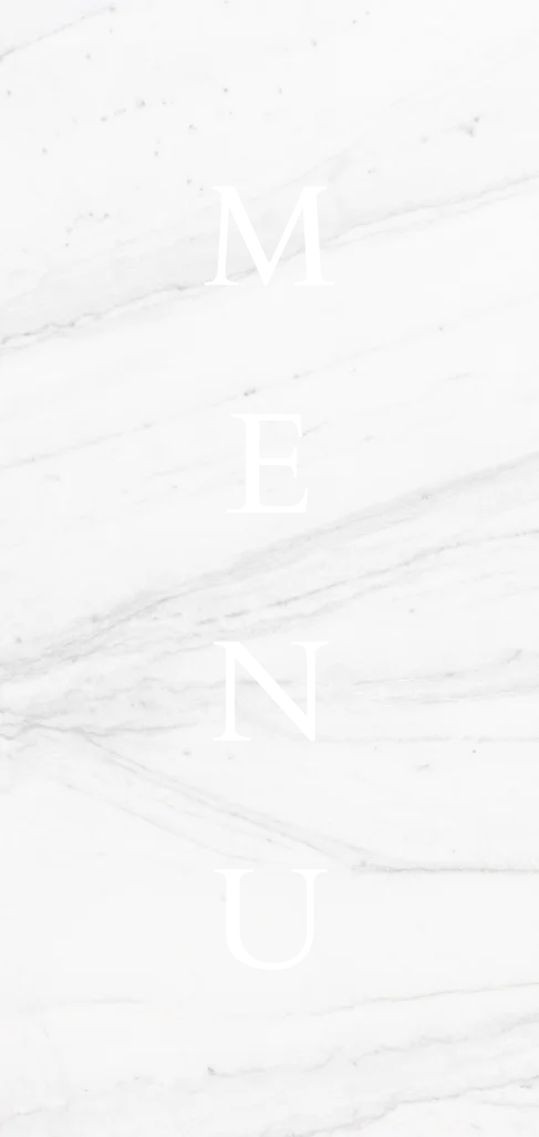 Moderne menukaart met goudfolie tekst in blokletters en een marmer-look achtergrond.