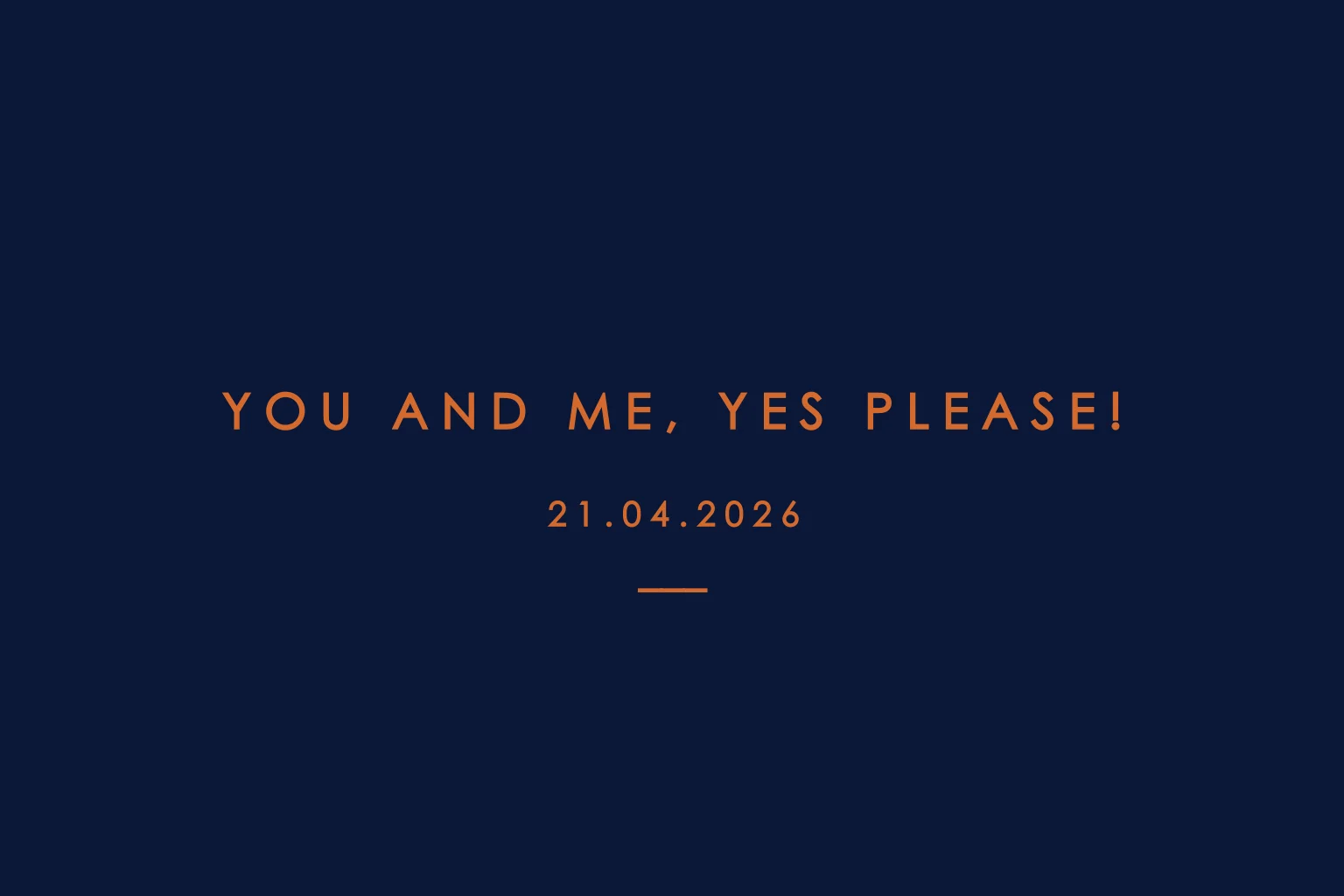 Chique save the date kaart in donkerblauw met de tekst, dat komt mooi uit tegen de donkere achtergrond. Pas de tekst naar wens aan in de online editor en maak de kaart persoonlijk.