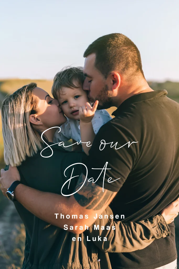 Save the date kaart met ruimte voor een leuke foto op de voorkant, upload deze in de online editor. De tekst is voor een deel in goudfolie druk en in wit, de achterkant van de kaart is in zandkleur, mooi in combinatie met een enveloppe met gouden inlay!| Totaalprijs: 0 |