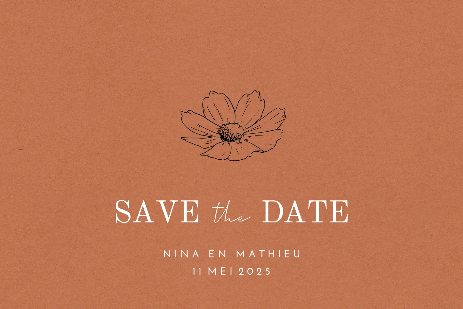 Als je op zoek bent naar een unieke en stijlvolle save the date kaart, dan is dit precies wat je zoekt! Deze kaart is hip en stijlvol, met aardetinten en bloemen. Het is een perfecte manier om je gasten te laten weten wanneer je bruiloft is, en het zal ervoor zorgen dat ze zich alvast gaan verheugen op deze speciale dag.