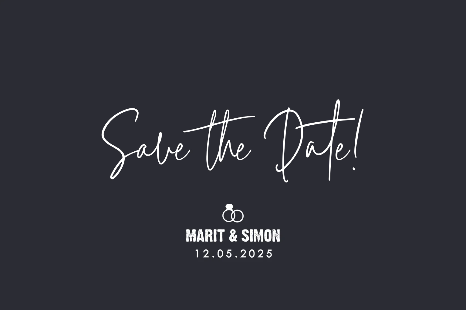 Donkerblauwe, moderne save the date kaart met 'save the date' in luxe goudfoliedruk. De namen staan in wit met trouwringen erboven. Ook de tekst aan de achterzijde is in wit met goudgeel, pas deze eenvoudig zelf aan in de online editor en maak de kaart persoonlijk.| Totaalprijs: 0 |