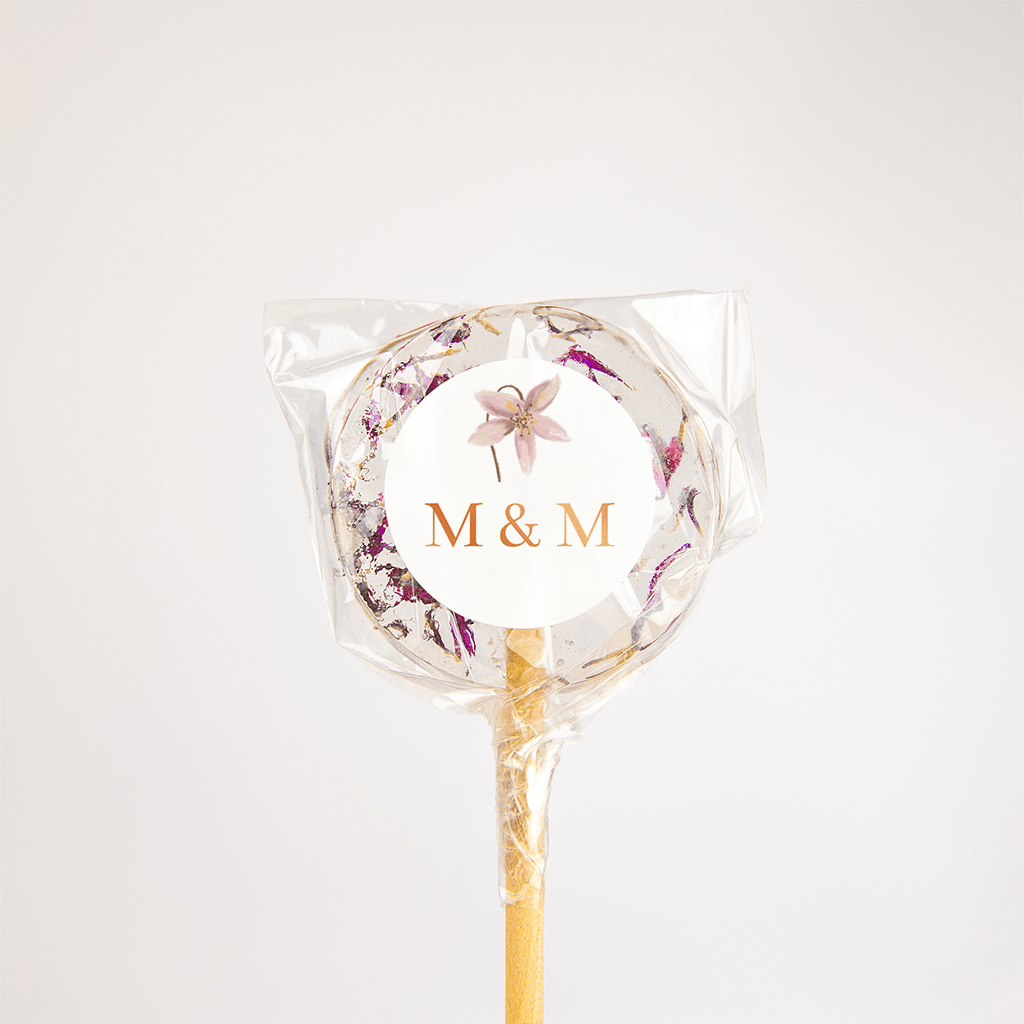 Een mooie sluitsticker met de initialen van jullie namen en een mooie getekende bloem op de achtergrond. Deze sticker maakt de uitnodiging voor jullie bruiloft helemaal af.