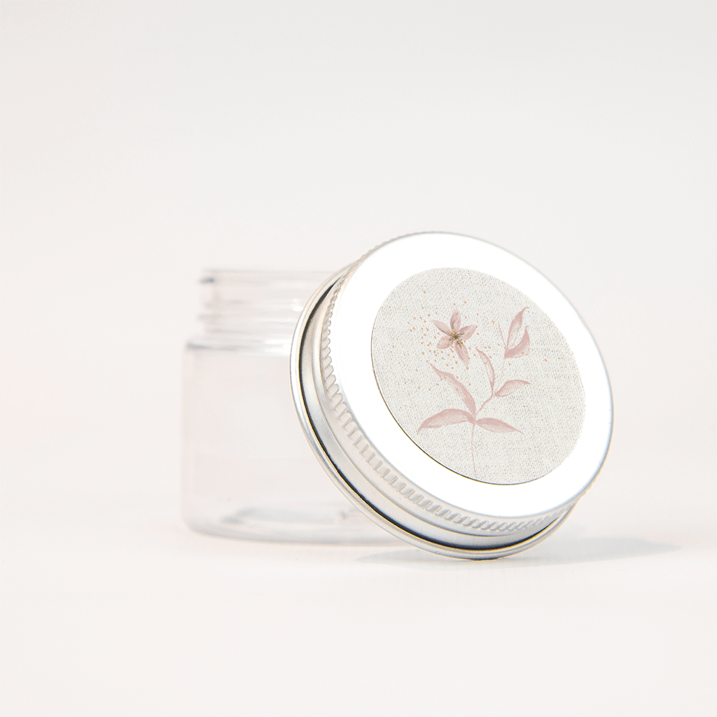 Een leuke sluitsticker passend bij de trouwhuisstijl met roze waterverf bloemen en takjes op een linnen-look achtergrond.