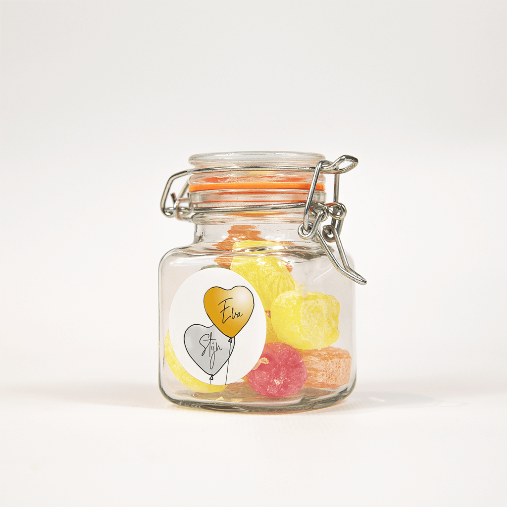Vrolijke sticker met twee ballonnen in hartjes formaat.