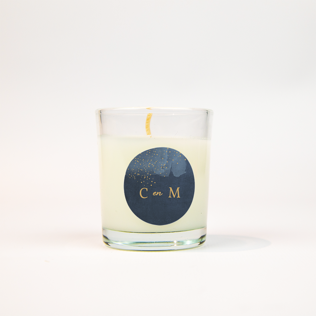 Sticker met blauwe achtergrond en gouden initialen - vel van 25 stickers