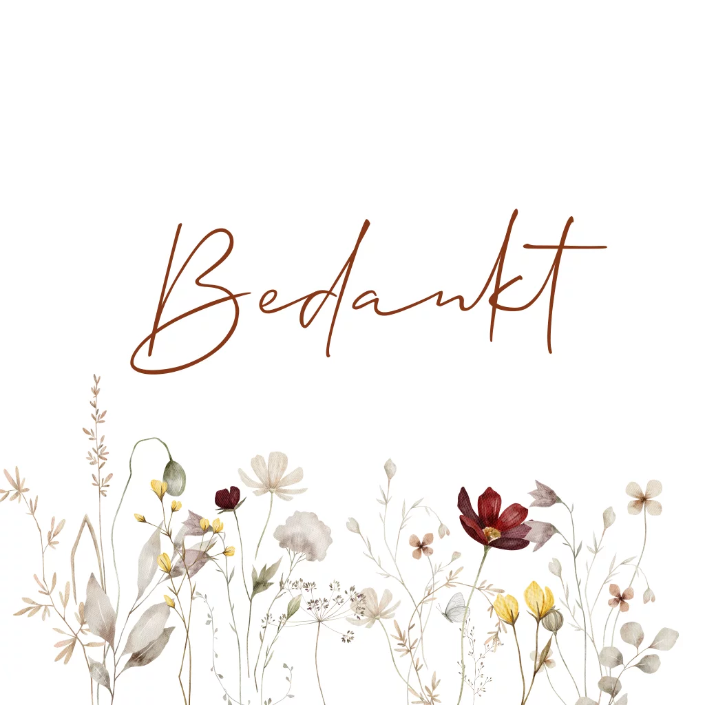 Een lieve sticker die perfect past bij de stijl van jullie trouwkaart. Met sierlijke letters en een bloemenrand onderaan in zachte keuren is deze sticker perfect om cadeautjes, tasjes of enveloppen voor de gasten te versieren.