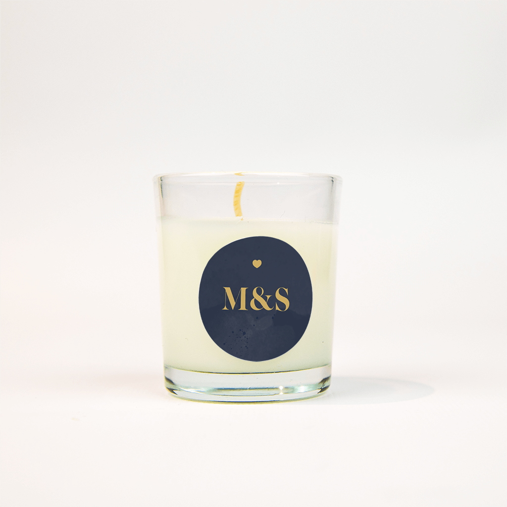 Sticker in donkerblauw met hartje en initialen - 25 stuks per vel
