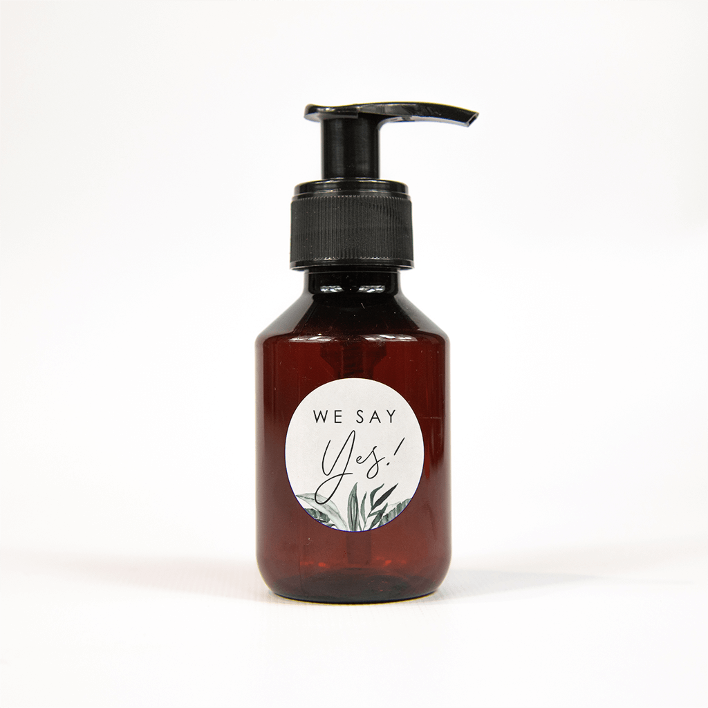 Sticker met handgeschilderde groene jungle bladeren en 'we say yes'! - vel van 25 stuks.