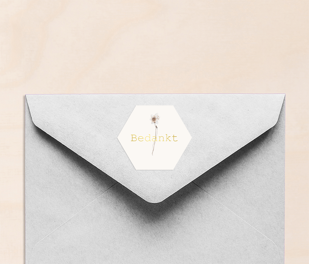 Sticker hexagon met bloem en goudfolie - 30 stuks per vel