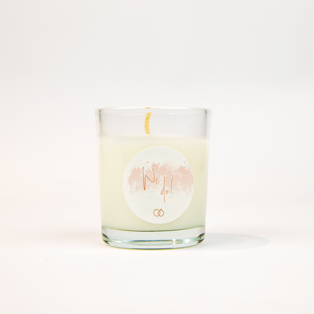 Sticker met roségoudfolie "We do" en ringen - per vel van 25 stuks