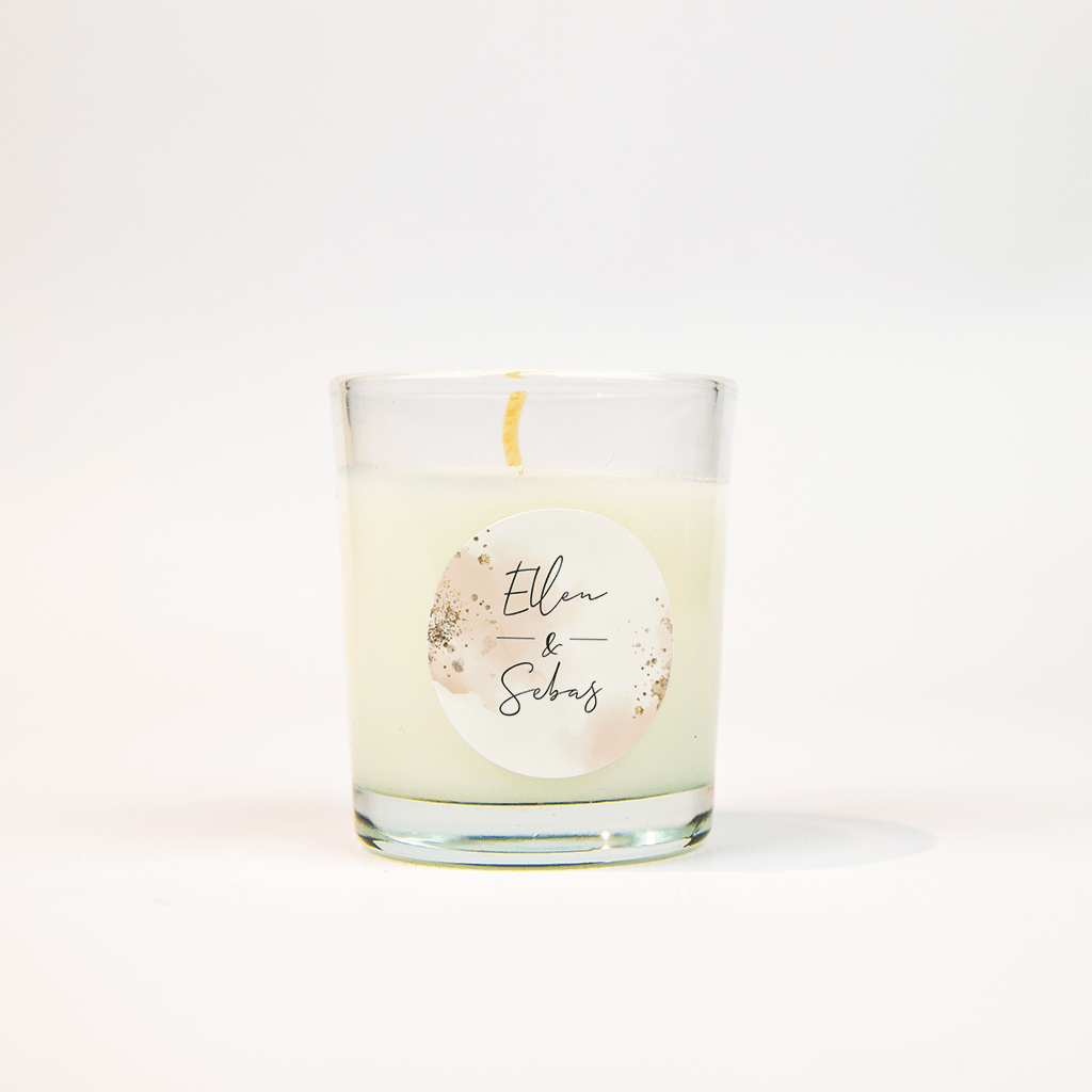 Stijlvol, deze sticker met roze aquarel en goudspetters! De namen van het bruidspaar staan centraal in trendy letters, dat zie je meteen als de enveloppe met deze sticker in de brievenbus valt!