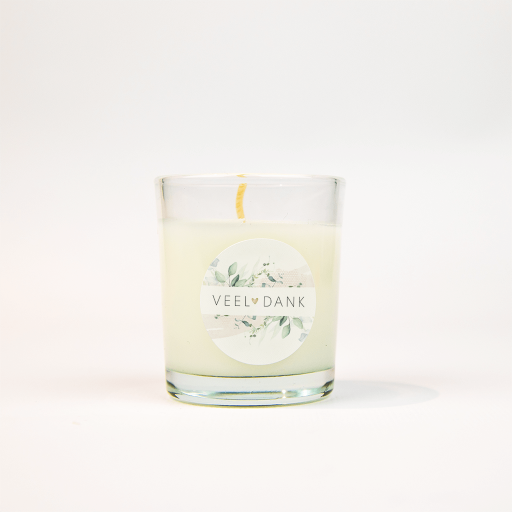 Sticker met "Veel dank", watercolor takjes en gouden hartje - 25 stuks
