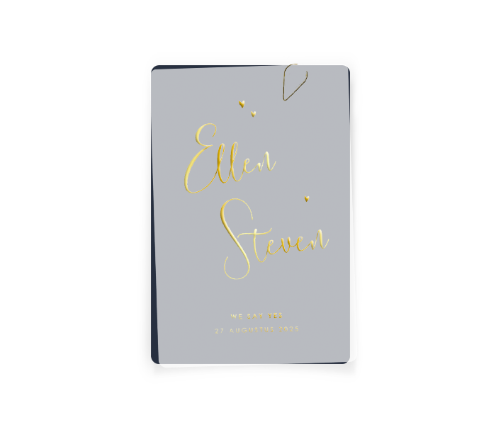 Bestel bij deze kaart het voorblad met de bruidsnamen. Dit voorblad is gemaakt van transparant papier.