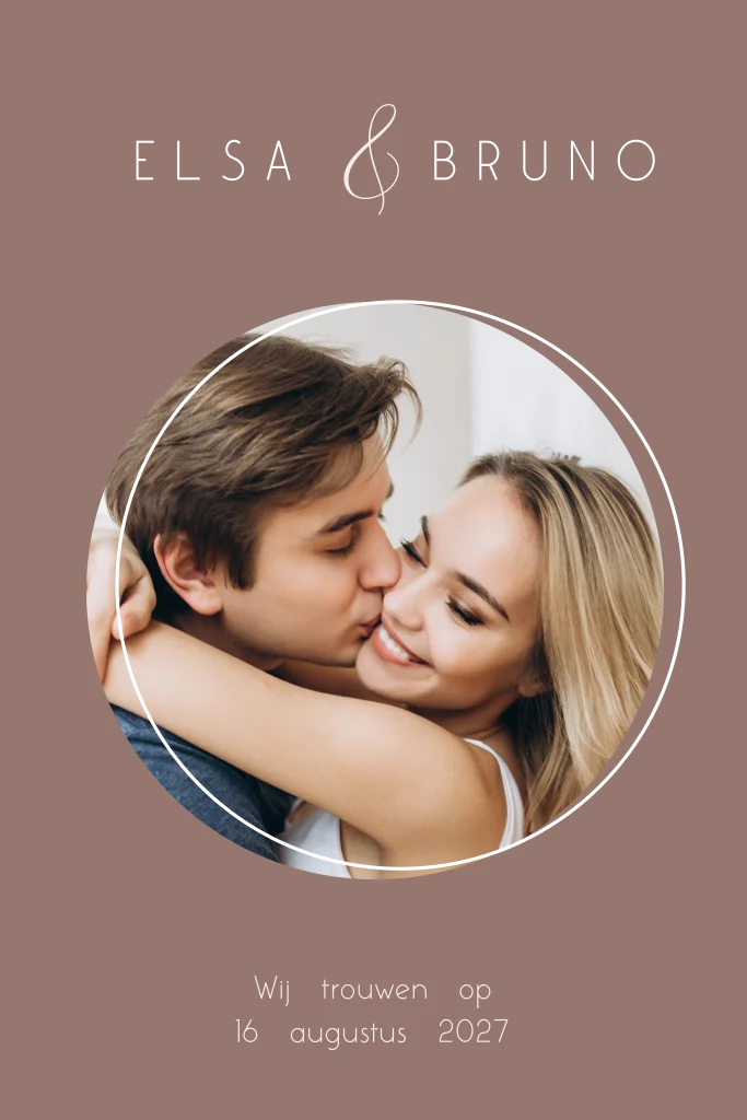 Wanneer je op zoek bent naar een stijlvolle en moderne trouwkaart, is deze chique huwelijksuitnodiging met foto en rosegoudfolie een perfecte keuze. De kaart heeft een rustige en elegante uitstraling.