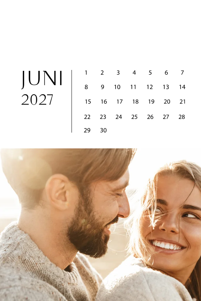 Trouwkaart met een kalender van de maand waarin jullie gaan trouwen, een hartje van roségoudfolie om de datum geeft dé grote dag aan! Op de voorkant kun je een leuke foto plaatsen, een deel van de tekst staat in sierlijk lettertype ook in roségoudfolie, maak de kaart naar wens af in de online editor.