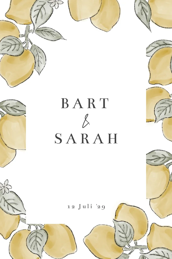 Vintage, shabby chic, romantisch, speels... dit alles is momenteel supermodern en helemaal de trend voor trouwuitnodigingen. Nodig gasten stijlvol uit voor jullie bruiloft met dit bijzondere citroendesign.
