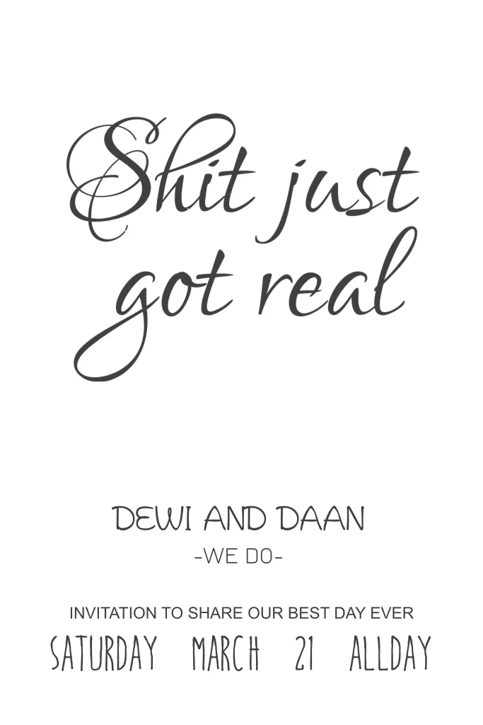 Wanneer gaan jullie trouwen? Met dit supertrendy kaartje nodig jij de gasten uit voor de grote dag. Speciaal is het stijlvolle, sierlijke lettertype in combinatie met de icoontjes van goudfolie. De lieve hartjes maken het helemaal af!
