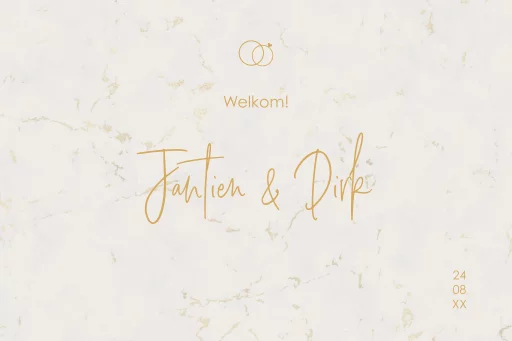 Een mooi welkom voor de gasten van jullie huwelijk met een marmeren achtergrond en jullie namen. Een stijlvol welkomsbord voor de gasten van jullie huwelijks feest.