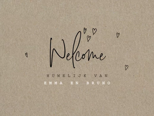 Bruiloftsbord met zwarte hartjes op kraft-look