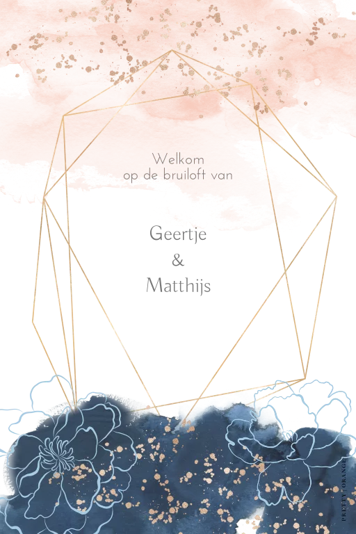 Heet jullie gasten welkom met dit mooie welkomstbord. Dit stijlvolle bord hoort bij de prachtige trouwkaart met waterverf achtergrond en bloemen in lijnen en maakt jullie trouwhuisstijl compleet.