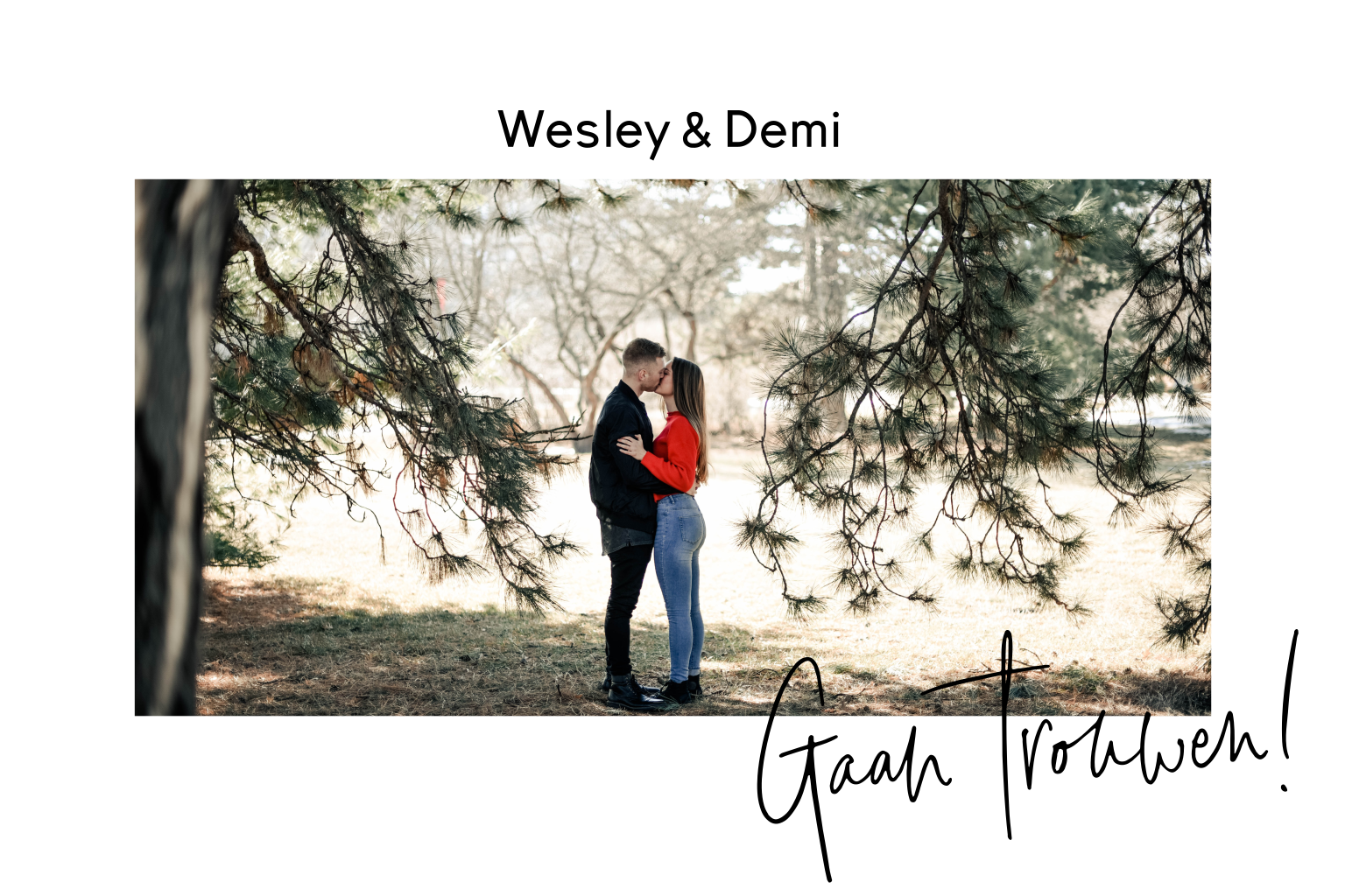 Een hippe trouwkaart voor eigen ontwerp met ruimte voor een grote foto aan de voorkant. Op de achterkant plaats je een leuke collage van jullie loveshoot! Met een trendy lettertype en een persoonlijke tekst maak je er een unieke uitnodiging van in de online editor.