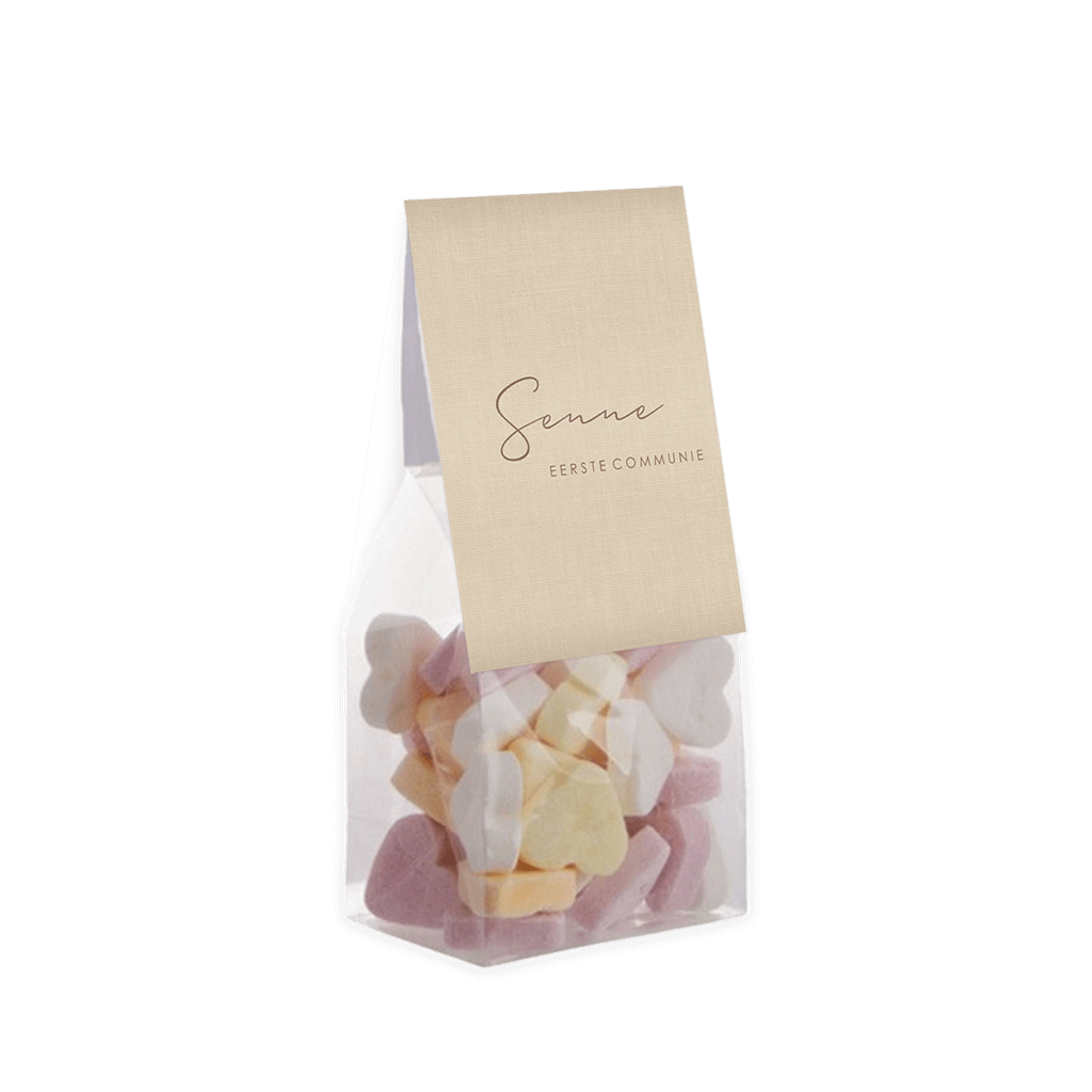 Simpel vouwkaartje voor communie bedankjes in beige