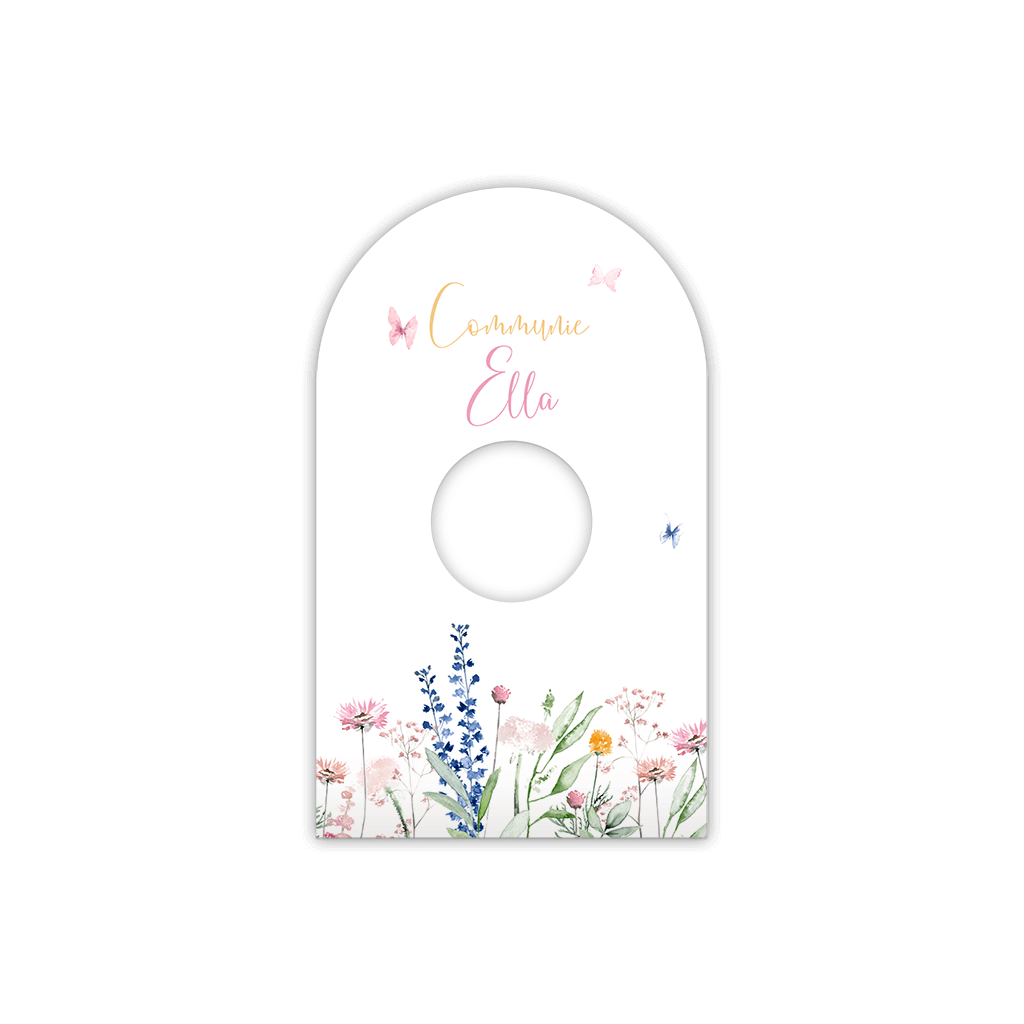 communiekaartje bloemen met foto 60 x 100 mm (gevouwen), cadeauverpakking voor bloemzaden.