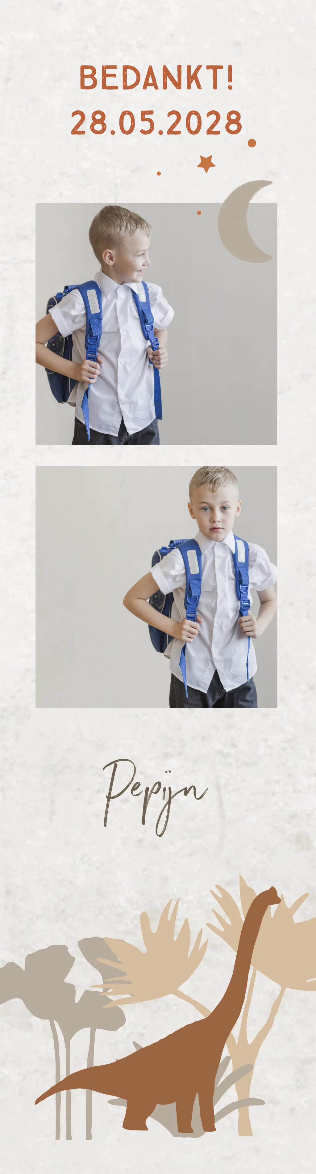 Boekenlegger jongen dino silhouette en twee luikjes waar je zelf eigen foto's in kan toevoegen.