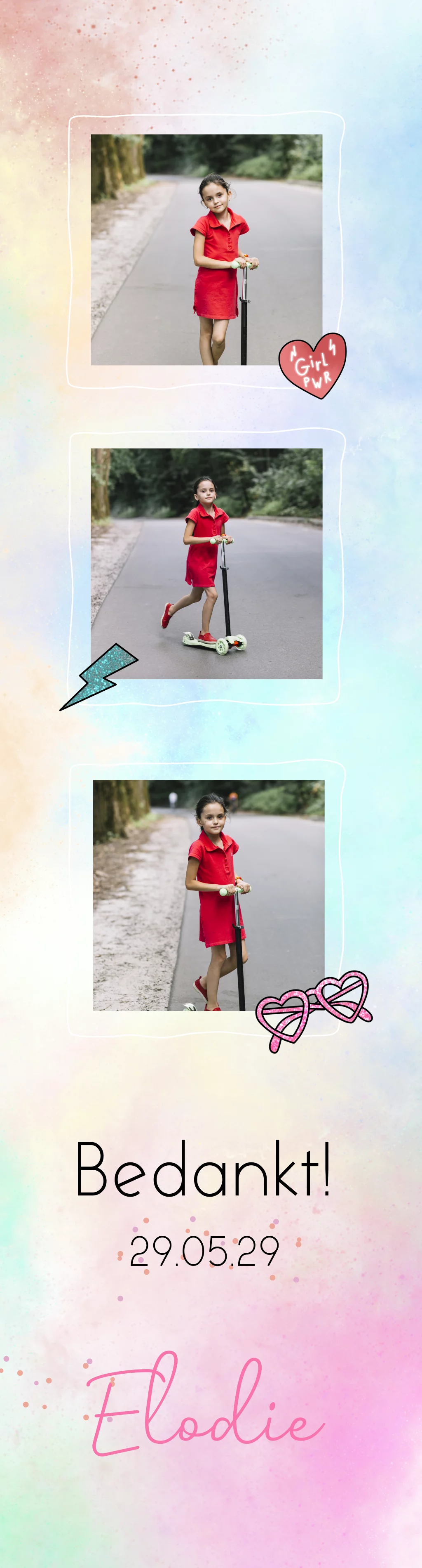 Boekenlegger voor een meisje met regenboog achtergrond en leuke items